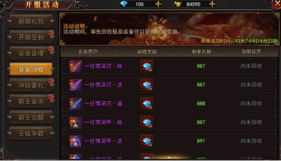 【活动内容】活动期间,率先回收极品装备可以获得高额奖励